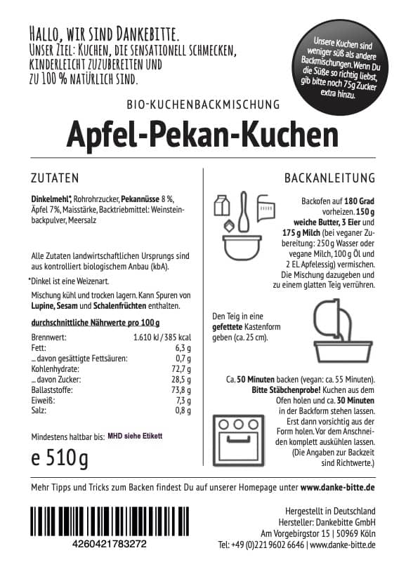 Eine Backmischung für einen Kastenkuchen mit Apfel und Pekannüssen – ein wahres Meisterwerk für anspruchsvolle Genießer!