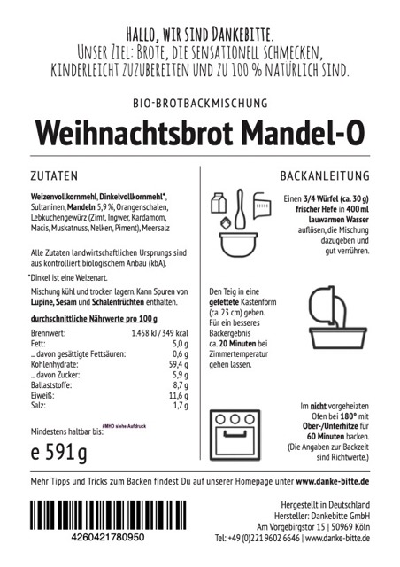 Produktinformationen "Weihnachtsbrot Mandel-O"
