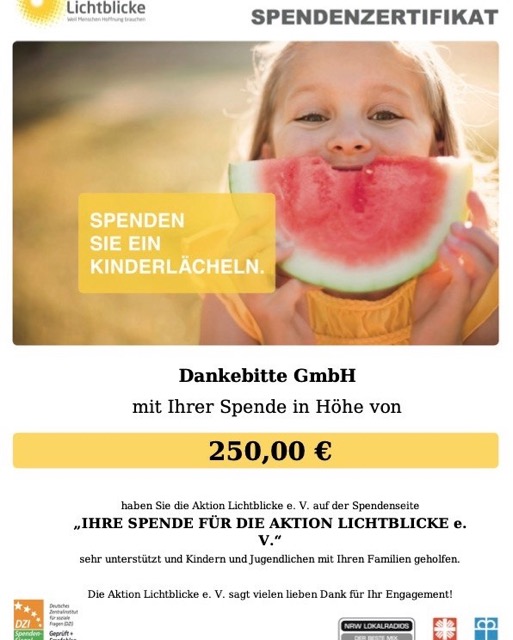 Und der Erlös geht zu hundert Prozent an lichtblicke.de.