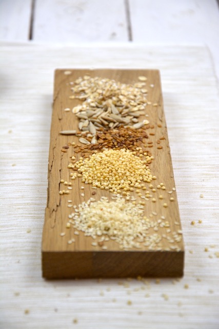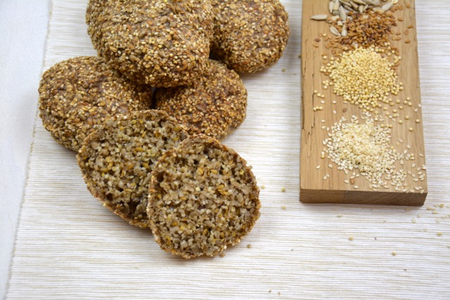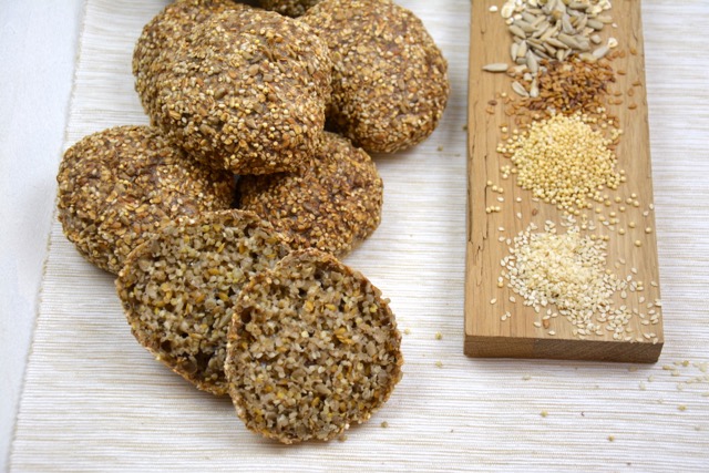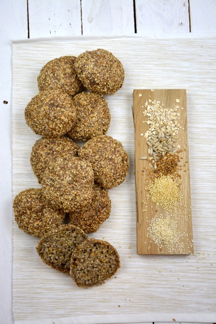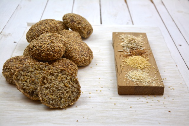 Sie bestehen als Basis auch aus glutenfreien Flocken und vielen goldenen Saaten.