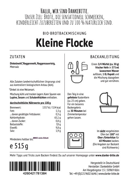 Diese Brotbackmischung ist nach Abfüllung ungeöffnet 11 Monate haltbar! 100% Natur!